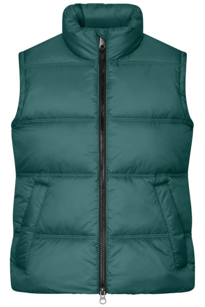 Voluminös gesteppte Winterweste aus recyceltem Polyester Sugenro Füllung unterteilt in große Kammern Dreifache Steppnähte 2 seitliche Taschen mit Reißverschluss Durchgehender 2-Wege-Reißverschluss 2 große Innentaschen 1/2 Oberweite: 50 cm 1/2 Taillenweite: 48 cm 1/2 Saumweite: 51 cm Länge ab Schulter: 60 cm BIONIC-FINISH®ECO GRS Standard Sugenro® GRS Insulation Reißverschluss 2-Wege Stehkragen