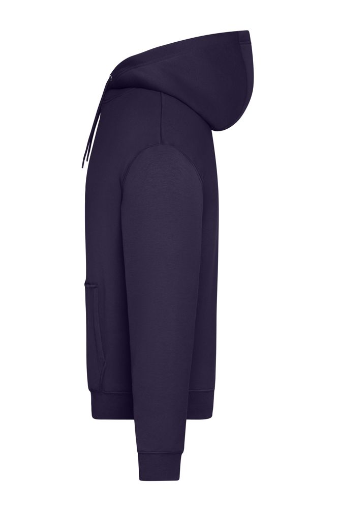 Hochwertige Sweat-Qualität mit angerauter Innenseite Materialmix aus gekämmter, ringgesponnener BIO-Baumwolle und recyceltem Polyester Doppellagige Kapuze mit Kordelzug Kängurutasche Bund und Armbündchen mit Elasthan 1/2 Oberweite: 56 cm Länge ab Schulter: 64 cm Ärmel Länge: 55 cm OEKO-TEX® Standard 100 (15.0.70467) Bio Baumwolle OCS Standard blended RCS blended Kapuze