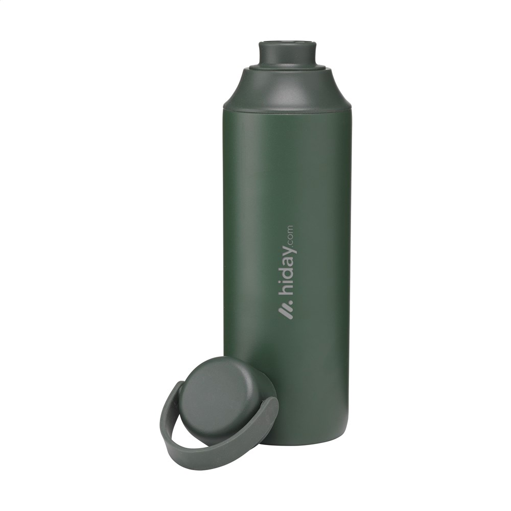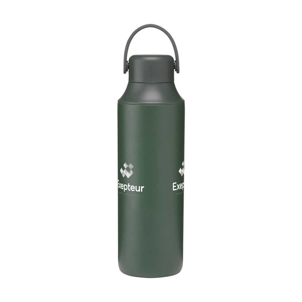 Doppelwandige Thermosflasche aus recyceltem Edelstahl. Die auslaufsichere Flasche hat eine Silikon-Trageschlaufe und 2 Öffnungen mit Schraubverschluss: eine Trinköffnung und eine großzügige Öffnung zum einfachen Reinigen der Flasche oder zum Einfüllen von Eiswürfeln. Passt in die meisten Getränkehalter und ist mit einer attraktiven Pulverbeschichtung versehen. Geeignet, um kalte oder heiße Getränke auf der richtigen Temperatur zu halten. Nicht spülmaschinengeeignet. RCS-zertifiziert. Gesamtes recyceltes Material: 72%. Fassungsvermögen 600 ml. Edelstahl kann viele Male recycelt werden – die Qualität des Materials bleibt dabei weitgehend erhalten. Durch die Verwendung von recyceltem Edelstahl kommt eine geringere Menge an neuen Rohstoffen zum Einsatz. Das bedeutet weniger Energieverbrauch und weniger Wasserverbrauch. Verpackt pro Stück.