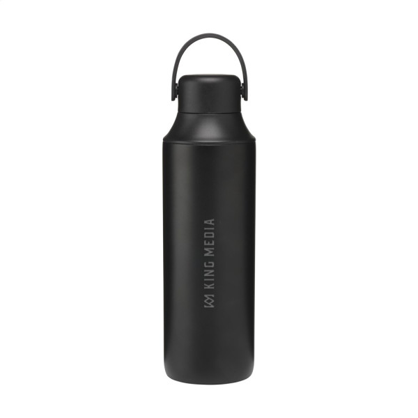 Doppelwandige Thermosflasche aus recyceltem Edelstahl. Die auslaufsichere Flasche hat eine Silikon-Trageschlaufe und 2 Öffnungen mit Schraubverschluss: eine Trinköffnung und eine großzügige Öffnung zum einfachen Reinigen der Flasche oder zum Einfüllen von Eiswürfeln. Passt in die meisten Getränkehalter und ist mit einer attraktiven Pulverbeschichtung versehen. Geeignet, um kalte oder heiße Getränke auf der richtigen Temperatur zu halten. Nicht spülmaschinengeeignet. RCS-zertifiziert. Gesamtes recyceltes Material: 72%. Fassungsvermögen 600 ml. Edelstahl kann viele Male recycelt werden – die Qualität des Materials bleibt dabei weitgehend erhalten. Durch die Verwendung von recyceltem Edelstahl kommt eine geringere Menge an neuen Rohstoffen zum Einsatz. Das bedeutet weniger Energieverbrauch und weniger Wasserverbrauch. Verpackt pro Stück.