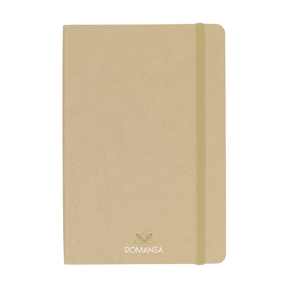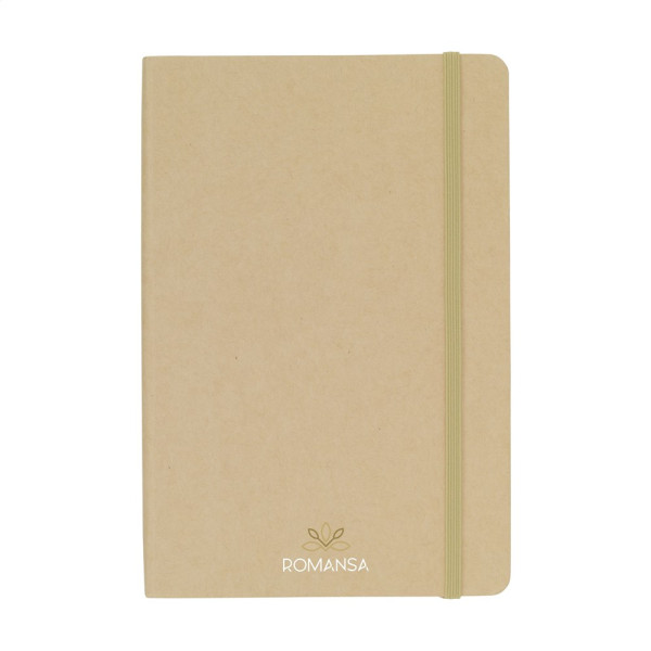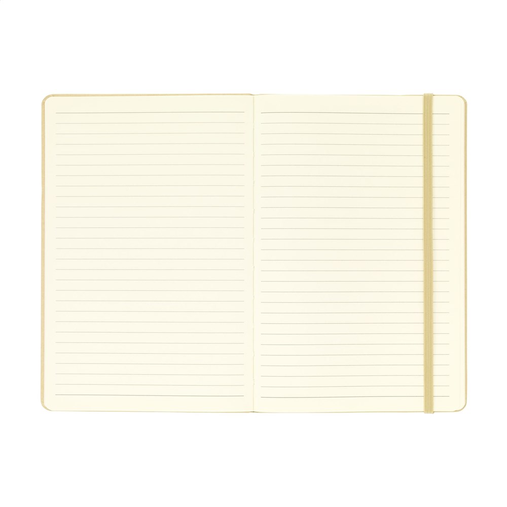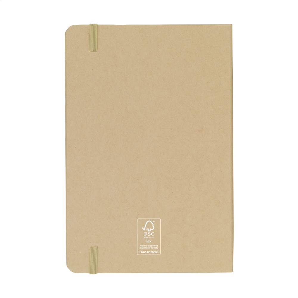 A5-Notizbuch mit Hardcover aus FSC Mix zertifiziertem Karton. Das Notizbuch umfasst ca. 80 Blatt/160 Seiten cremefarbenes, liniertes FSC Mix zertifiziertes Papier (70 g/m²). Mit gebundenem Buchrücken und praktischem Gummiverschluss.