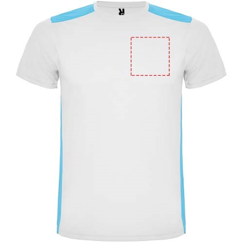 Funktions-T-Shirt aus atmungsaktivem Stoff. Rundhalsausschnitt. Kombination aus zwei Polyestergeweben im Rücken- und Schulterbereich. Polyester Bienenwabe Vorne und 3D-Netz Polyester auf Schulter und Rücken. Material ist feuchtigkeitabsorbierend. Ziernähte auf den Schultern und Seiten. Schnitt mit verlängertem Rückenteil. Abnehmbares Etikett.