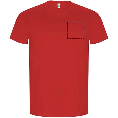 Schlauchförmiges kurzärmeliges T-Shirt aus Bio-Baumwolle. Rundhalsausschnitt mit 1 × 1 Rippstrick. Ziernähte am Saum und an den Ärmeln. Herausnehmbares Etikett. Das Modell ist 185 cm groß und trägt Größe L.