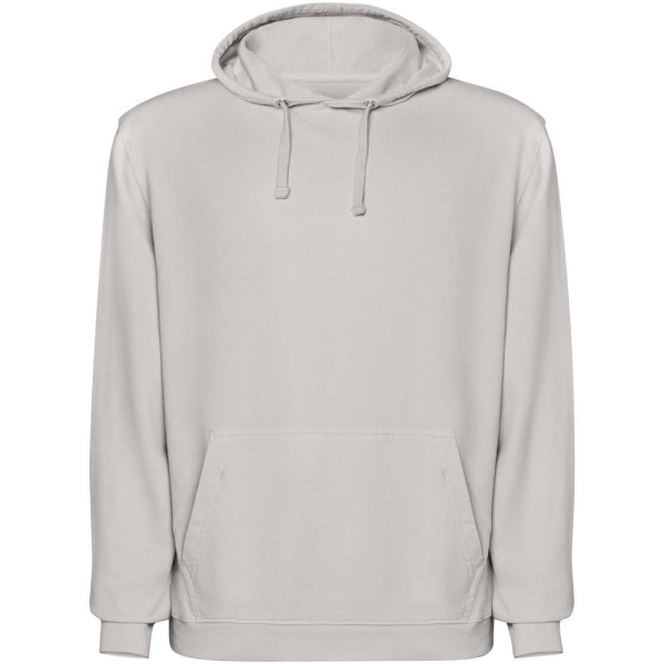 Unisex Kapuzenpullover mit Acid-Wash-Finish. 2x1 gerippte Bündchen und Saum. Kapuzenfutter aus Single-Jersey Ton-in-Ton, mit passenden flachen Schnürbändern. Ton-in-Ton Abdeckstich am Hals. Kängurutasche.