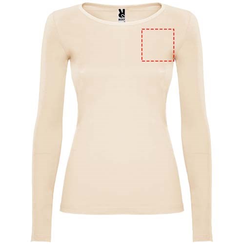 Langärmeliges, halb tailliertes T-Shirt mit feinem Halsbündchen. Keine Ärmelbündchen. Seitennähte. Herausnehmbares Etikett.