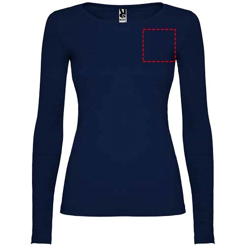 Langärmeliges, halb tailliertes T-Shirt mit feinem Halsbündchen. Keine Ärmelbündchen. Seitennähte. Herausnehmbares Etikett.
