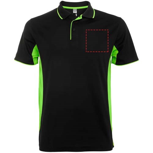 Zweifarbige Kombination. Strickkragen mit 3er-Knopfleiste, verdeckten Nähten und Streifen in Kontrastfarbe. Atmungsaktives Funktionsmaterial, leicht zu waschen und zu trocknen. Abnehmbares Etikett.