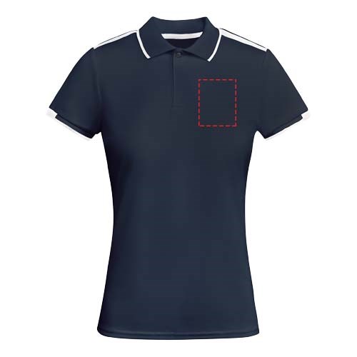 Antibakterieller Stoff aus recyceltem Polyester. 1x1-Rippstrick am Kragen und Details an den Ärmeln. Verstärkte, verdeckte Nähte am Kragen. Knopfleiste mit 2 verdeckten Druckknöpfen. Details und Schulterpartien in Kontrastfarbe. Seitenschlitze am Saum. Körperbetont. Abnehmbares Etikett.