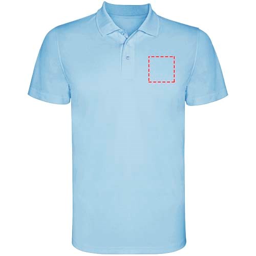 Kurzärmeliges Funktions-Poloshirt. Gestrickter Kragen mit 3-Knopfleiste. Atmungsaktives, leicht zu waschendes und zu trocknendes Material. Herausnehmbares Etikett. Technisches Gewebe. Atmungsaktiver Stoff.