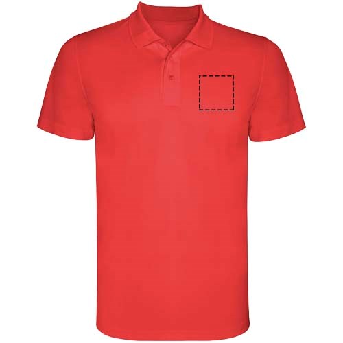 Kurzärmeliges Funktions-Poloshirt. Gestrickter Kragen mit 3-Knopfleiste. Atmungsaktives, leicht zu waschendes und zu trocknendes Material. Herausnehmbares Etikett. Technisches Gewebe. Atmungsaktiver Stoff.