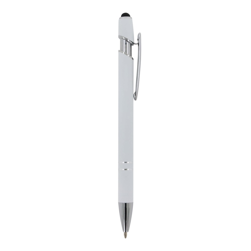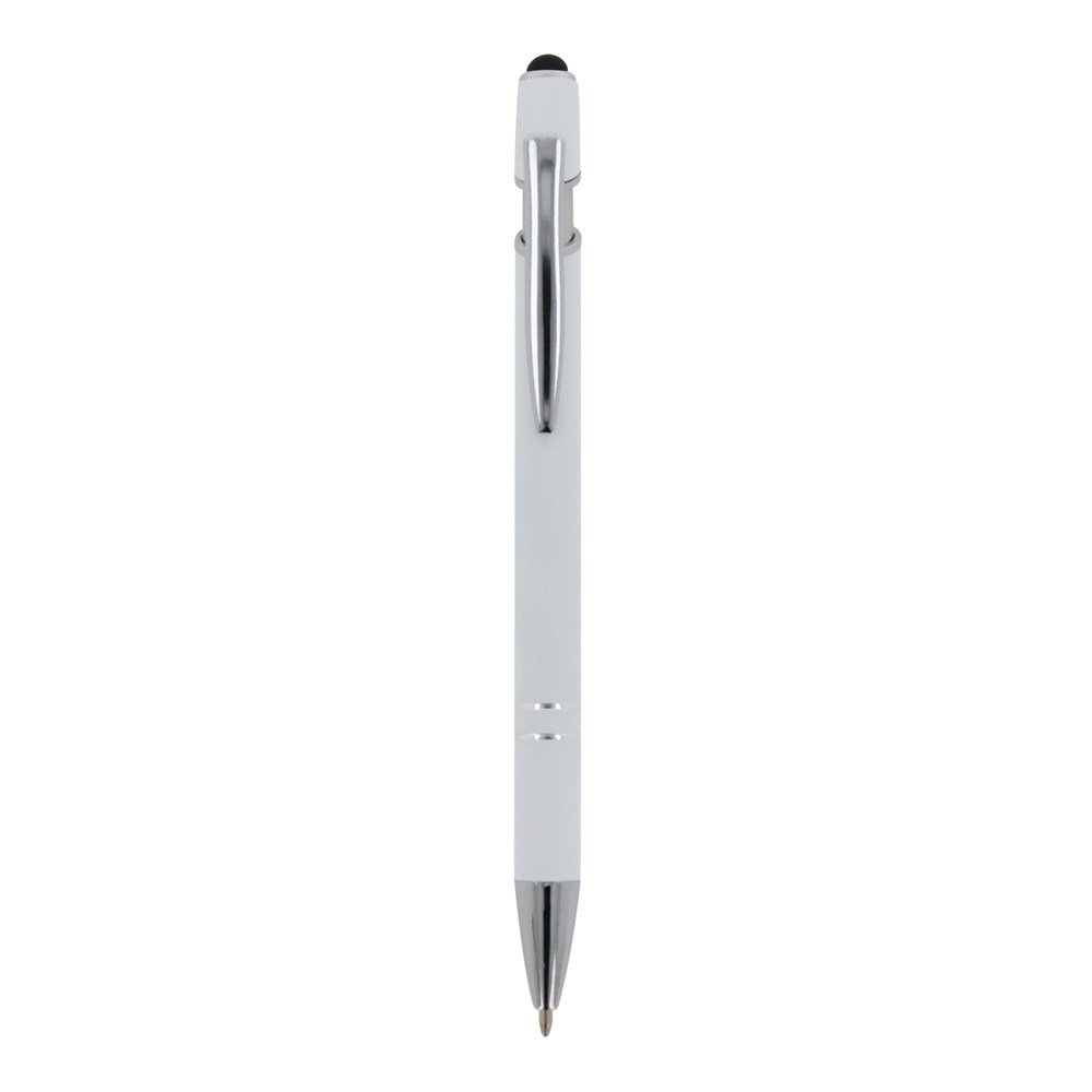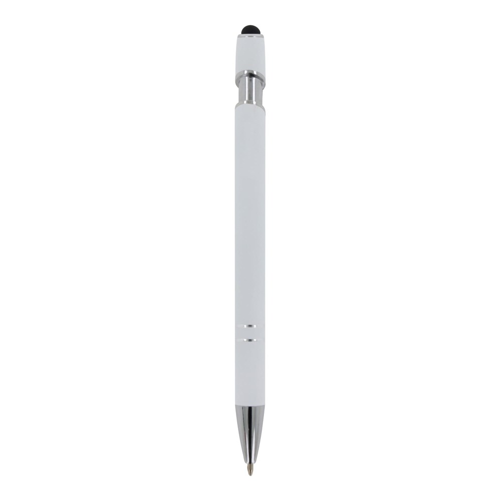 Kugelschreiber aus Aluminium mit elegantem Soft-Touch-Finish und Stylus. Mit massivem Metallclip. Schreibfarbe: blau.