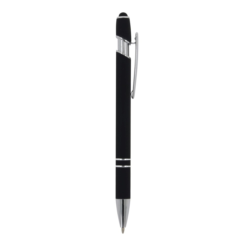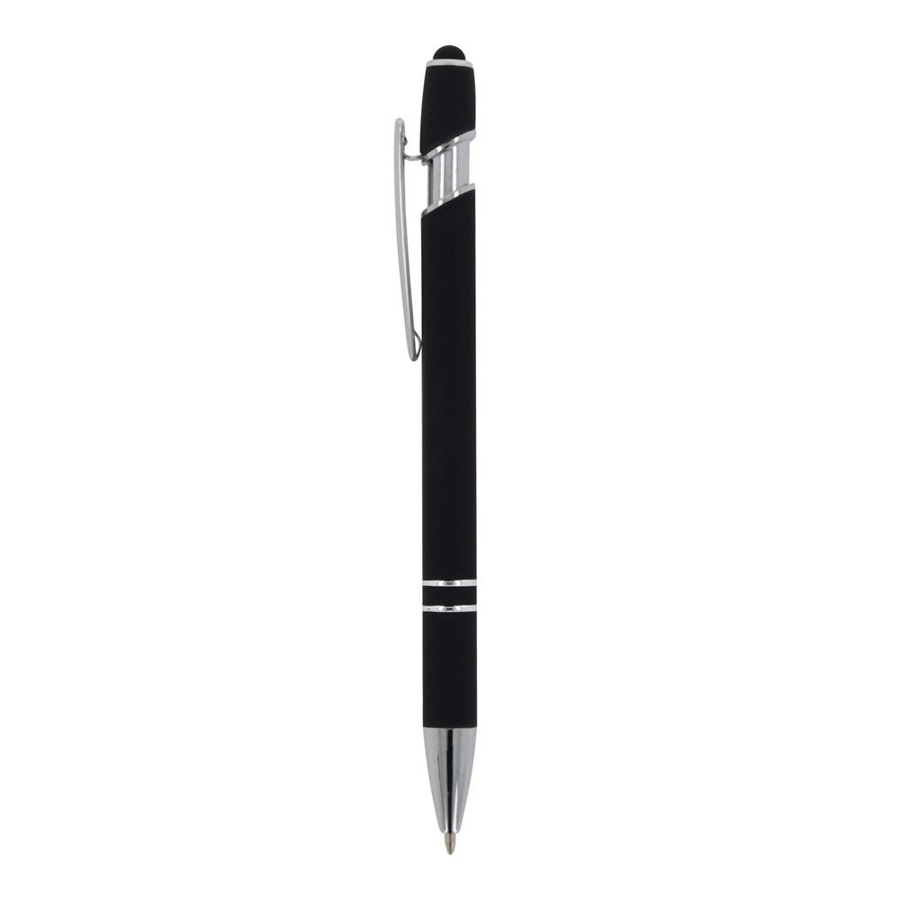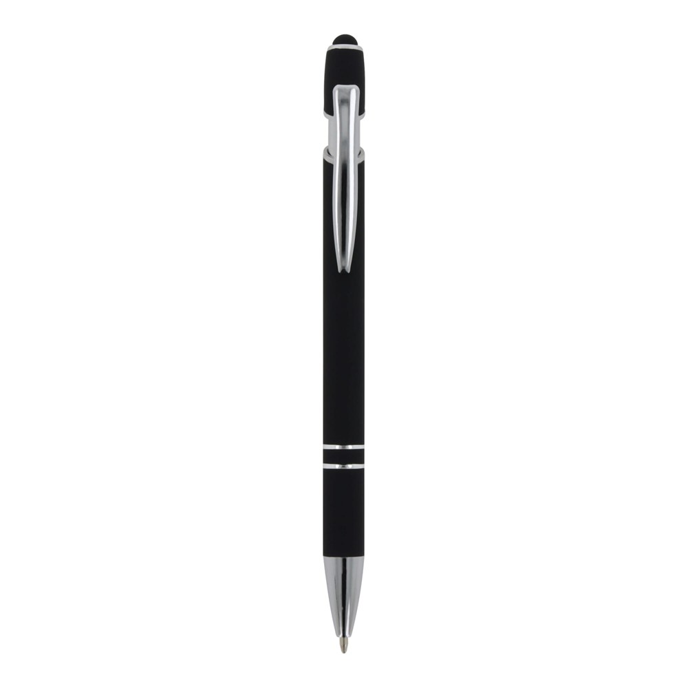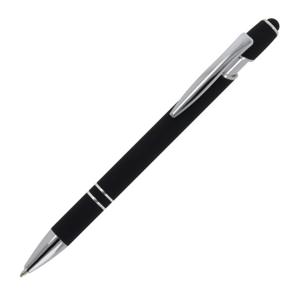 Kugelschreiber aus Aluminium mit elegantem Soft-Touch-Finish und Stylus. Mit massivem Metallclip. Schreibfarbe: blau.