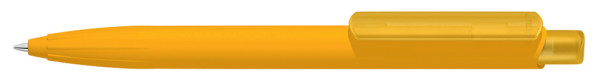 Druckkugelscheiber mit gummiertem Gehäuse aus recyceltem ABS-Kunststoff mit transparent gefrostetem Clip und Drücker. Eingelassene Griffzone.