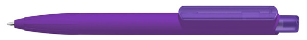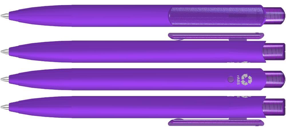 Druckkugelscheiber mit gummiertem Gehäuse aus recyceltem ABS-Kunststoff mit transparent gefrostetem Clip und Drücker. Eingelassene Griffzone.