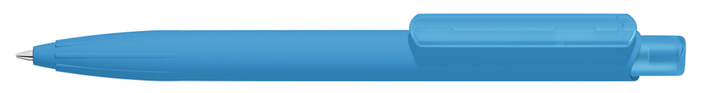 Druckkugelscheiber mit gummiertem Gehäuse aus recyceltem ABS-Kunststoff mit transparent gefrostetem Clip und Drücker. Eingelassene Griffzone.