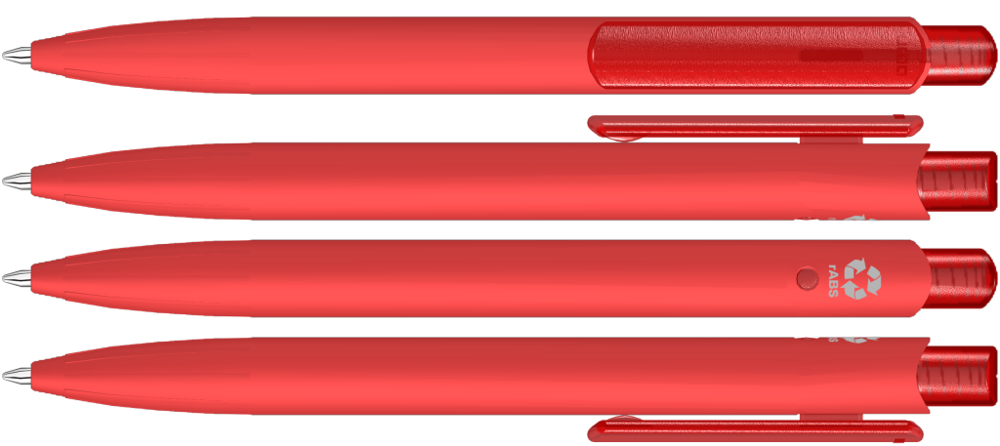 Druckkugelscheiber mit gummiertem Gehäuse aus recyceltem ABS-Kunststoff mit transparent gefrostetem Clip und Drücker. Eingelassene Griffzone.
