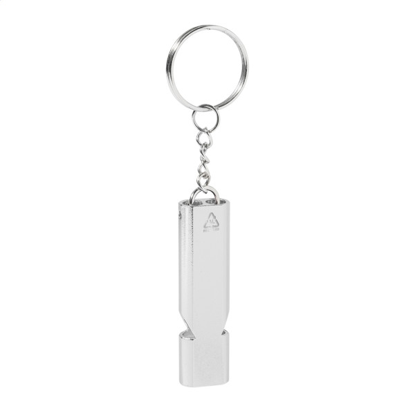 Pfeife aus recyceltem Aluminium mit Schlüsselring aus Metall.