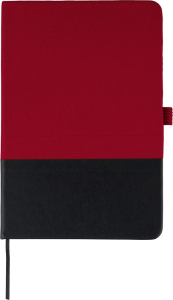 A5-Notizbuch aus rPET-Polyester mit einer teilweise laserbaren PU-Vorderseite. Nach der Gravur passt sich die Farbe dem rPET-Gewebe an. Es verfügt über 80 linierte Seiten (70 g/m²), ein Gummiband, eine Stiftschlaufe und ein Lesebändchen. Der untere PU-Bereich ist für die Gravur vorgesehen, um die passende Farbe zu erhalten.