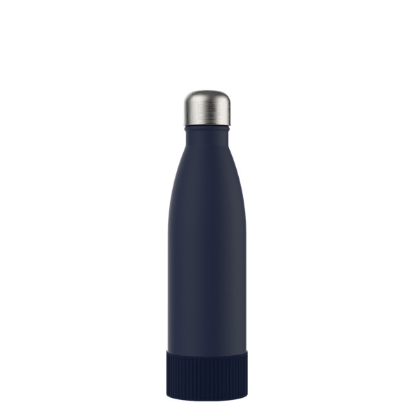 Für Heiß- oder Kaltgetränke, unsere doppelwandige Edelstahlflasche überzeugt durch trendiges und funktionales Design. Durch die Doppelwandigkeit mit Vakuum bleiben ihre Getränke lange kalt bzw. heiß. Die Trinkflasche kann mit edlem mattschwarzem, weißem Powder Coating oder natürlich silberglänzend bestellt werden. 500 ml Fassungsvermögen stehen zur Verfügung. Setzen Sie ihr Logo stilvoll in Szene auf der Trend Trinkflasche schlechthin.