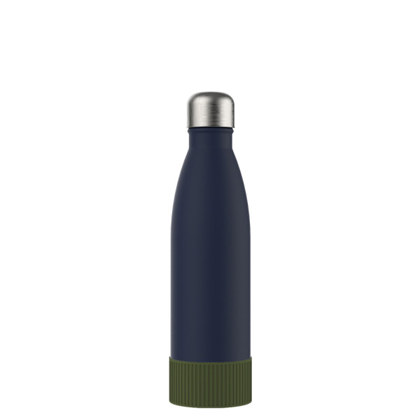 Für Heiß- oder Kaltgetränke, unsere doppelwandige Edelstahlflasche überzeugt durch trendiges und funktionales Design. Durch die Doppelwandigkeit mit Vakuum bleiben ihre Getränke lange kalt bzw. heiß. Die Trinkflasche kann mit edlem mattschwarzem, weißem Powder Coating oder natürlich silberglänzend bestellt werden. 500 ml Fassungsvermögen stehen zur Verfügung. Setzen Sie ihr Logo stilvoll in Szene auf der Trend Trinkflasche schlechthin.