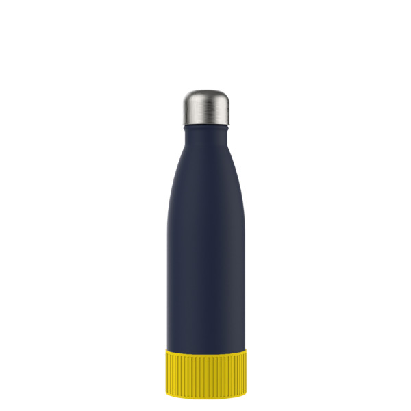 Für Heiß- oder Kaltgetränke, unsere doppelwandige Edelstahlflasche überzeugt durch trendiges und funktionales Design. Durch die Doppelwandigkeit mit Vakuum bleiben ihre Getränke lange kalt bzw. heiß. Die Trinkflasche kann mit edlem mattschwarzem, weißem Powder Coating oder natürlich silberglänzend bestellt werden. 500 ml Fassungsvermögen stehen zur Verfügung. Setzen Sie ihr Logo stilvoll in Szene auf der Trend Trinkflasche schlechthin.