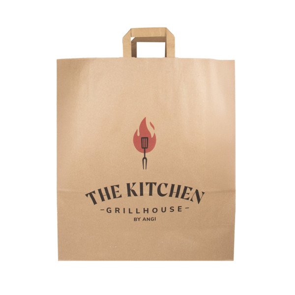 Papier Tragetaschen flach gefalteter Griff braun XL (A3) 32 x 15 x 42 cm 2-seitig