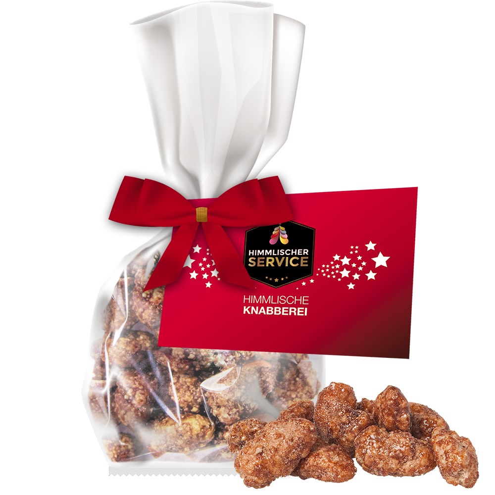 Feuergebrannte Mandeln, ca. 30g, Express Flachbeutel mit Schleife mit Werbekarte