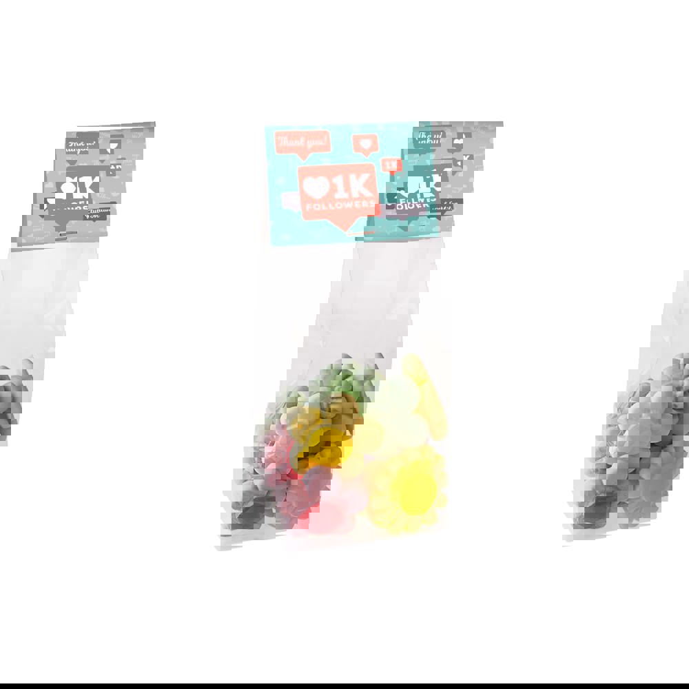 Blockbeutel mit Kopfkarte und 100 Gramm Süssigkeiten