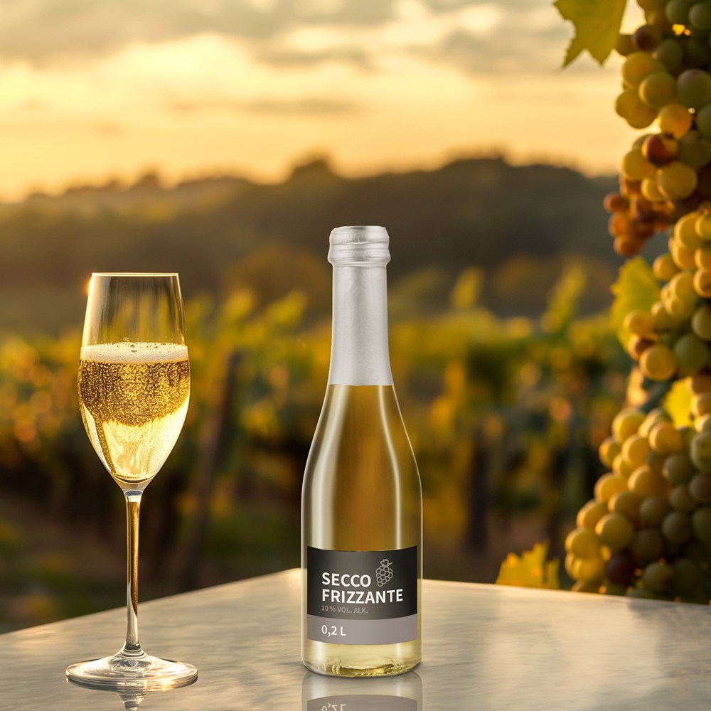 Ein klassischer Perlwein, der sich durch eine elegante und zugleich lebendige Geschmacksnote auszeichnet. Der „Secco Frizzante“ überzeugt mit seinem klaren, frischen Aroma und seinem feinen, anhaltenden Prickeln: da wird jeder Schluck einem Erlebnis. Hergestellt aus sorgfältig ausgewählten Trauben, verkörpert der Secco die traditionelle italienische Weinbaukunst. Mit einem Alkoholgehalt von 10% vol. bietet er eine gute Balance zwischen Geschmack und Leichtigkeit, ideal für Liebhaber des „Dolce Vita“.