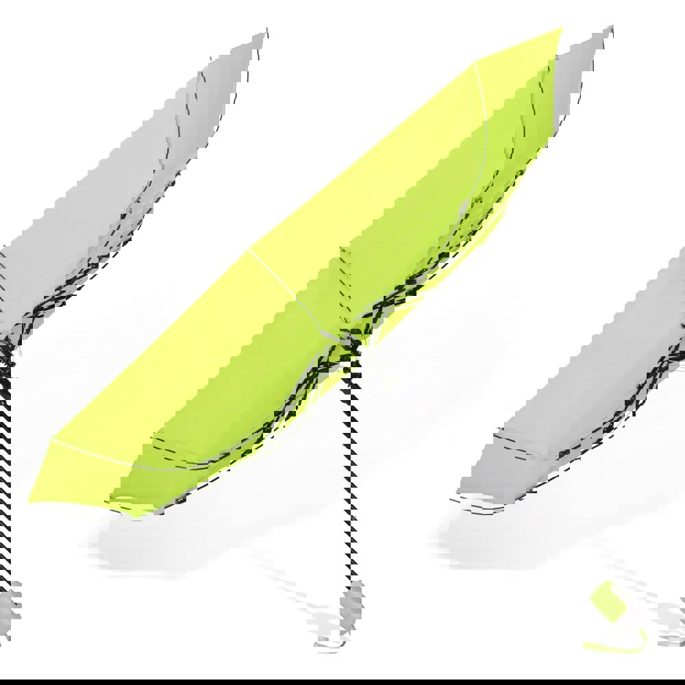 Schöner faltbarer Regenschirm mit Hülle und ergonomischem Designgriff. Die Verstrebungen des Gestells sind aus Fiberglas für zusätzliche Haltbarkeit. Das schwarze Gestell bildet einen schönen Kontrast zum bunten Schirmdach aus Pongee-Polyester.