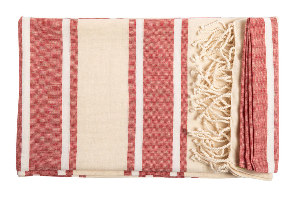 Zweifarbiges Pareo-Strandtuch aus 100% organischer Baumwolle (110 g/m²).