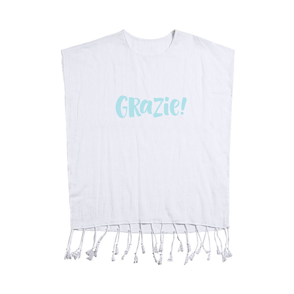 Kaftan aus weichem Stoff und mit Fransenabschluss. Einheitsgröße für Erwachsene und aus Baumwolle gefertigt.