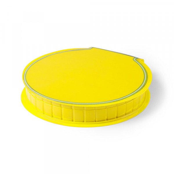 Rundes, widerstandsfähiges Design-Etui in kräftigen Farben mit 14-teiligem Set im Inneren. Enthält Radiergummi, Anspitzer, Wachsmalstifte und zylinderförmige Buntstifte sowie Filzstifte, Aquarellfarben und Pinsel.
