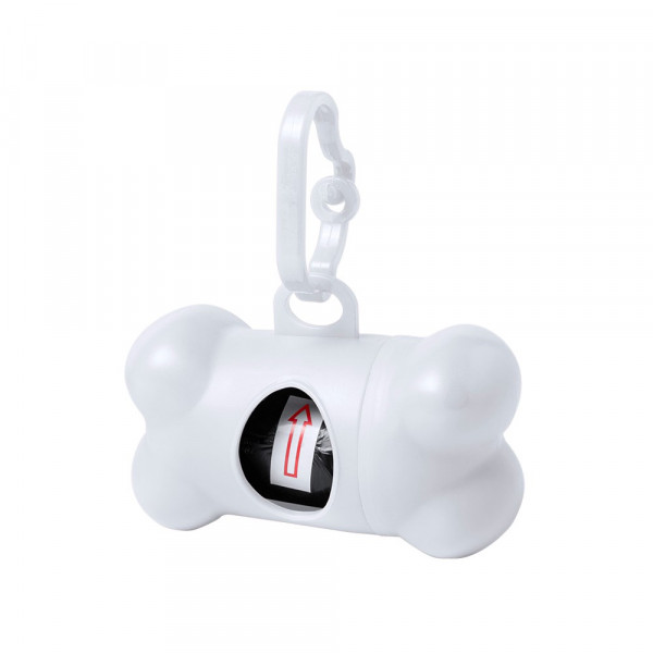 Beutelspender für Hundekot mit robustem Gehäuse in Knochenform und kräftigen Farben. Mit Befestigungskarabiner und 15 Beuteln.