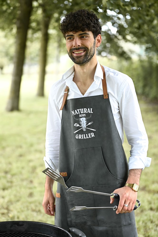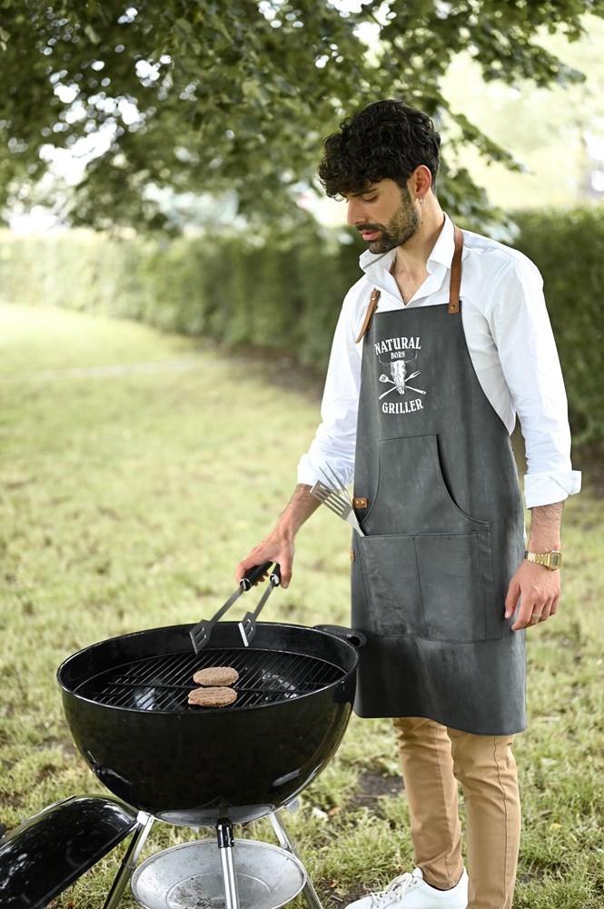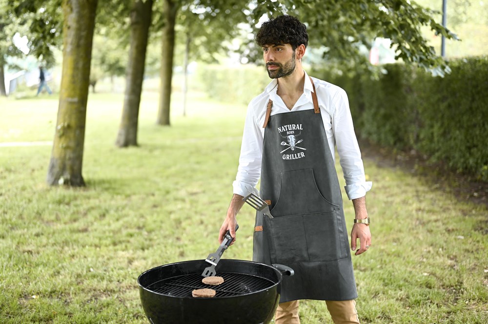 Mit dieser PU Schürze aus mattem Kunstleder sind Sie auf der sicheren Seite. Denn die coole, 83 x 63 cm große Schürze ist robust, hat eine geräumige Vordertasche und kann ideal zu jedem Anlass eingesetzt werden. Vom Grillabend bis hin zu jeglichen Küchenprojekten - diese stylische Schürze aus 100% PU mit 600 gr/m² ist eine solide Wahl! Eine Veredelung ist auf diesem vielseitigen Artikel möglich mit Stick, Transferdruck, Prägung oder Siebdruck. Statten Sie sich ideal aus für Ihr nächstes Projekt, mit der PU Schürze!