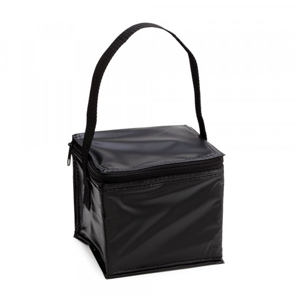 Kühltasche für 4 Dosen aus robustem PVC in kräftigen Farben. Isotherm-Innenraum in Aluminium-Ausführung. Mit Reißverschluss und farblich passendem Tragegriff.