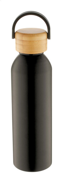 Sportflasche aus Aluminium mit Tragedeckel aus Bambus. Füllmenge: 600 ml.