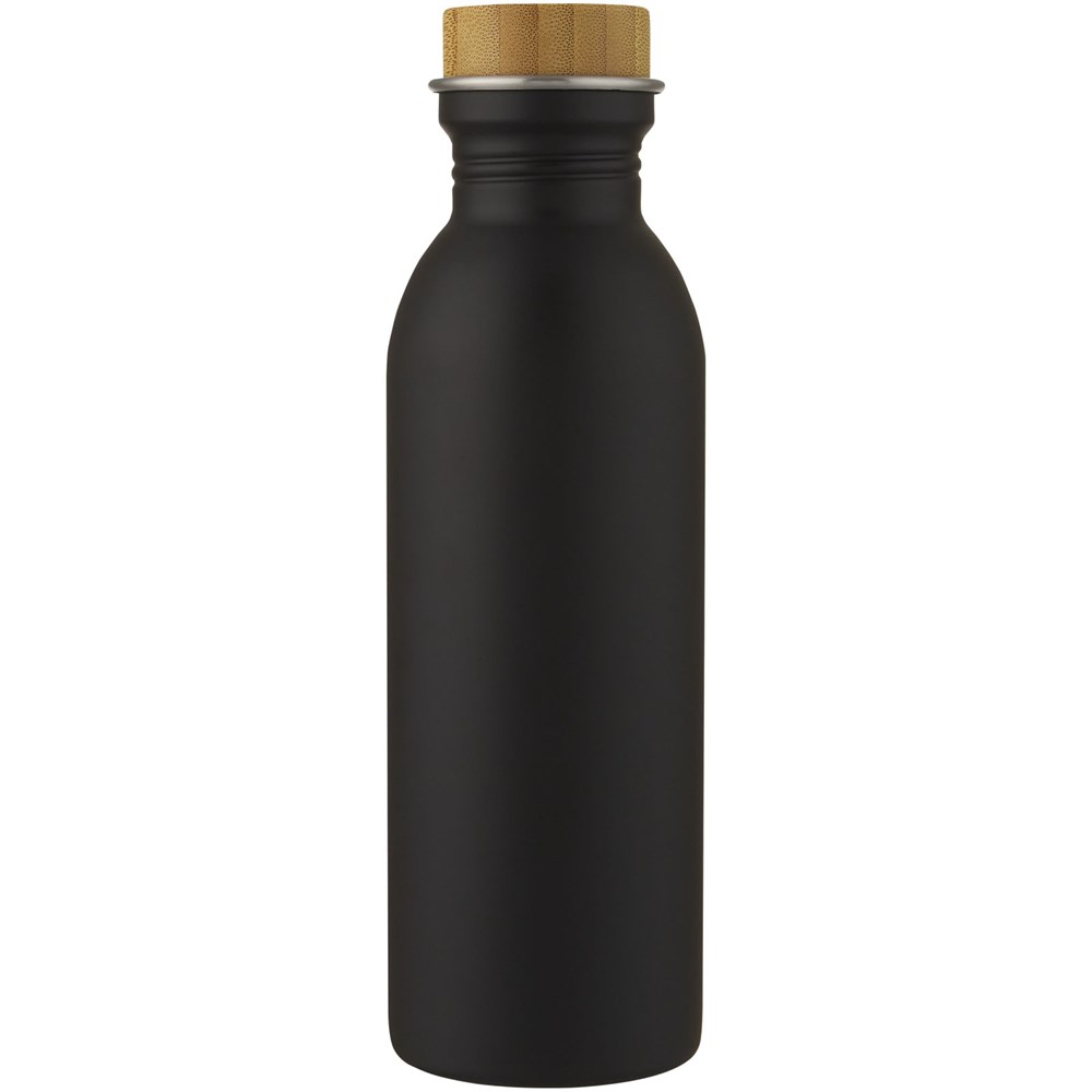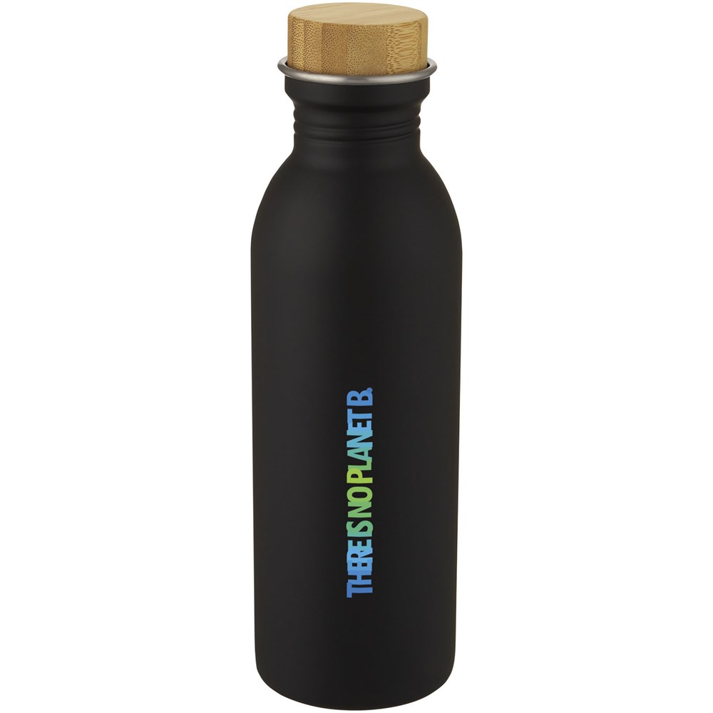 Einwandige Sportflasche aus 18/8-Edelstahl mit einem Deckel aus Bambus. BPA-frei, geprüft und zugelassen nach dem deutschen Lebensmittelrecht (LFGB). Auf Phthalate geprüft und zugelassen gemäß den REACH-Vorschriften. Der verwendete Bambus stammt aus nachhaltigen, umweltfreundlichen und sozialverträglichen Quellen. Das Fassungsvermögen beträgt 650 ml. Handwäsche empfohlen. Verpackt in einer Geschenkbox aus Recyclingkarton.