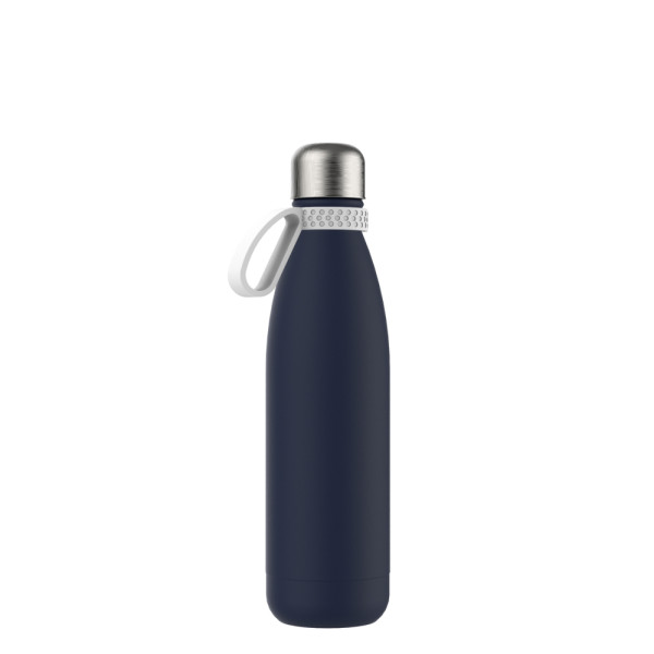 Für Heiß- oder Kaltgetränke, unsere doppelwandige Edelstahlflasche überzeugt durch trendiges und funktionales Design. Durch die Doppelwandigkeit mit Vakuum bleiben ihre Getränke lange kalt bzw. heiß. Die Trinkflasche kann mit edlem mattschwarzem, weißem Powder Coating oder natürlich silberglänzend bestellt werden. 500 ml Fassungsvermögen stehen zur Verfügung. Setzen Sie ihr Logo stilvoll in Szene auf der Trend Trinkflasche schlechthin.