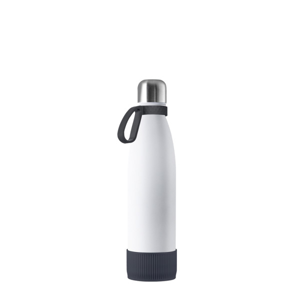 Für Heiß- oder Kaltgetränke, unsere doppelwandige Edelstahlflasche überzeugt durch trendiges und funktionales Design. Durch die Doppelwandigkeit mit Vakuum bleiben ihre Getränke lange kalt bzw. heiß. Die Trinkflasche kann mit edlem mattschwarzem, weißem Powder Coating oder natürlich silberglänzend bestellt werden. 500 ml Fassungsvermögen stehen zur Verfügung. Setzen Sie ihr Logo stilvoll in Szene auf der Trend Trinkflasche schlechthin.
