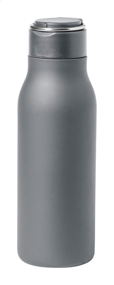 Edelstahl-Trinkflasche mit Tragedeckel. Füllmenge: 600 ml.