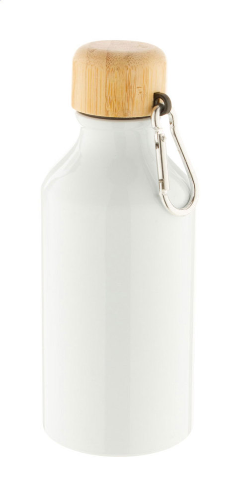 Sportflasche aus Aluminium mit Bambusdeckel und Karabiner. Füllmenge: 400 ml.