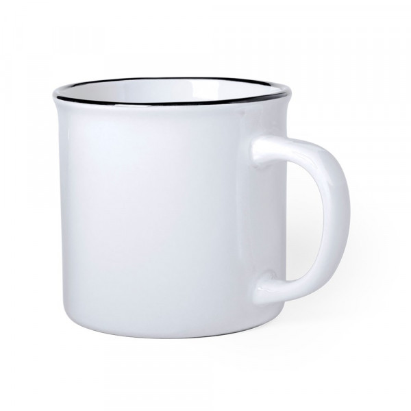 Keramiktasse AA mit 300 ml Fassungsvermögen und Vintage-Design. Außen in verschiedenen Farben mit schwarzem Rand und Innen in Weiß. Präsentiert in einer individuellen Box.Bedienungsanleitung in Spanisch und Englisch verfügbar.