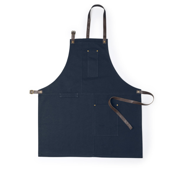 Profi-Schürze in hoher Qualität, aus widerstandsfähigem Canvas-Material aus Baumwolle mit 340 g/m2. Unter dem Knie sitzend, mit Hals- und Hüftgurten aus widerstandsfähigem PU-Leder, mit Schnallenverstellung und verstärkt durch Metallnieten. Inklusive vieler Taschen für mehrere Utensilien, mit verstärkten Nähten.