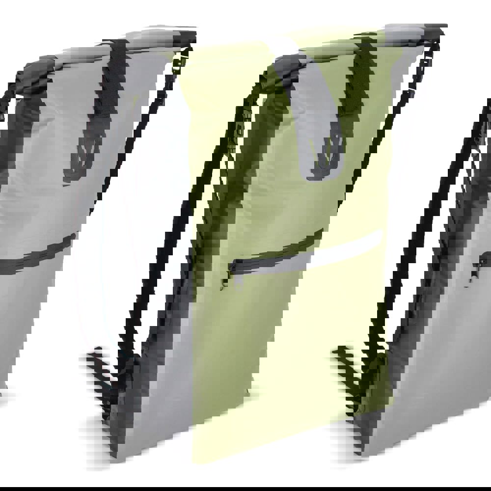 Verstellbarer, wetterfester Rucksack aus robustem Material. Das Rolltop kann auf zwei Arten geschlossen werden, was zusätzliche Flexibilität bietet. Die verschweißten Nähte halten den Inhalt trocken und die Schultergurte sind für den Komfort gepolstert.