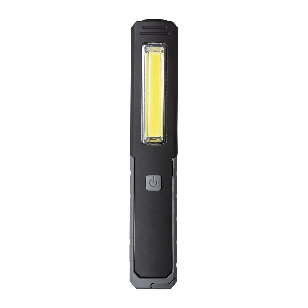 Ein handlicher Allrounder in Sachen Licht ist diese praktische Taschenlampe mit einem Magnet, einer Hängeschlaufe am klappbaren Henkel und einem Befestigungsclip für die Hemdtasche. Sie verfügt über ein seitlich angeordnetes COB-Licht (3 Watt, 160 Lumen) und eine LED-Leuchte (1 Watt, 60 Lumen).