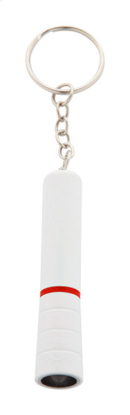 Mini-Taschenlampe aus Kunststoff mit weißem LED-Licht und Metall-Schlüsselring. Inkl. Knopfzellenbatterie.