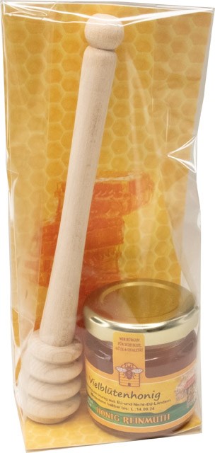 Genießen Sie den Honig zum Tee oder als süßen Brotauftstrich. Mit dem Honigheber aus Holz ist das Giveaway zur Weihnachtszeit harmonisch abgerundet. Der Einleger im Standardmotiv lässt sich für einen Werbeeindruck nutzen, eine individuelle Gestaltung ist ebenfalls ab 250 Stück möglich. Inhalt: 50 g Vielblüten-Honig, Honigheber aus Holz Warn- und Sicherheitshinweise: Kerze nicht unbeaufsichtigt brennen lassen und auf eine feuerfeste Unterlage stellen
