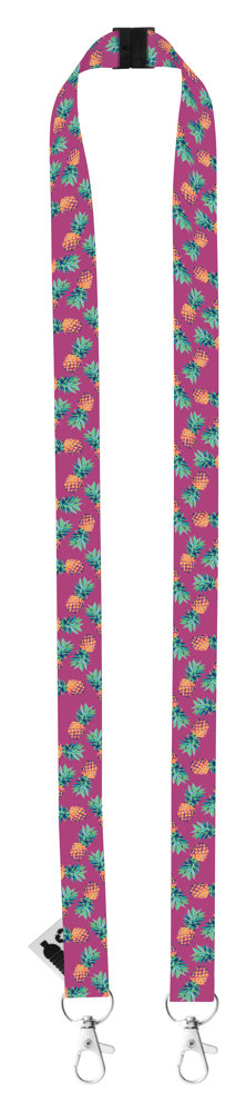 Individuelles Lanyard aus RPET mit 2 Metallkarabinern und Panikverschluss. Der Preis ist inkl. Sublimationsdruck auf beiden Seiten. Mindestmenge: 100 Stk.