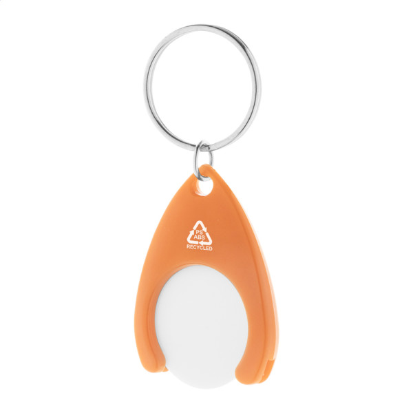 Schlüsselanhänger aus recyceltem ABS und recyceltem PS Kunststoff mit EKW-Chip und Metall-Schlüsselring. Chip-Größe: ø24×2 mm.